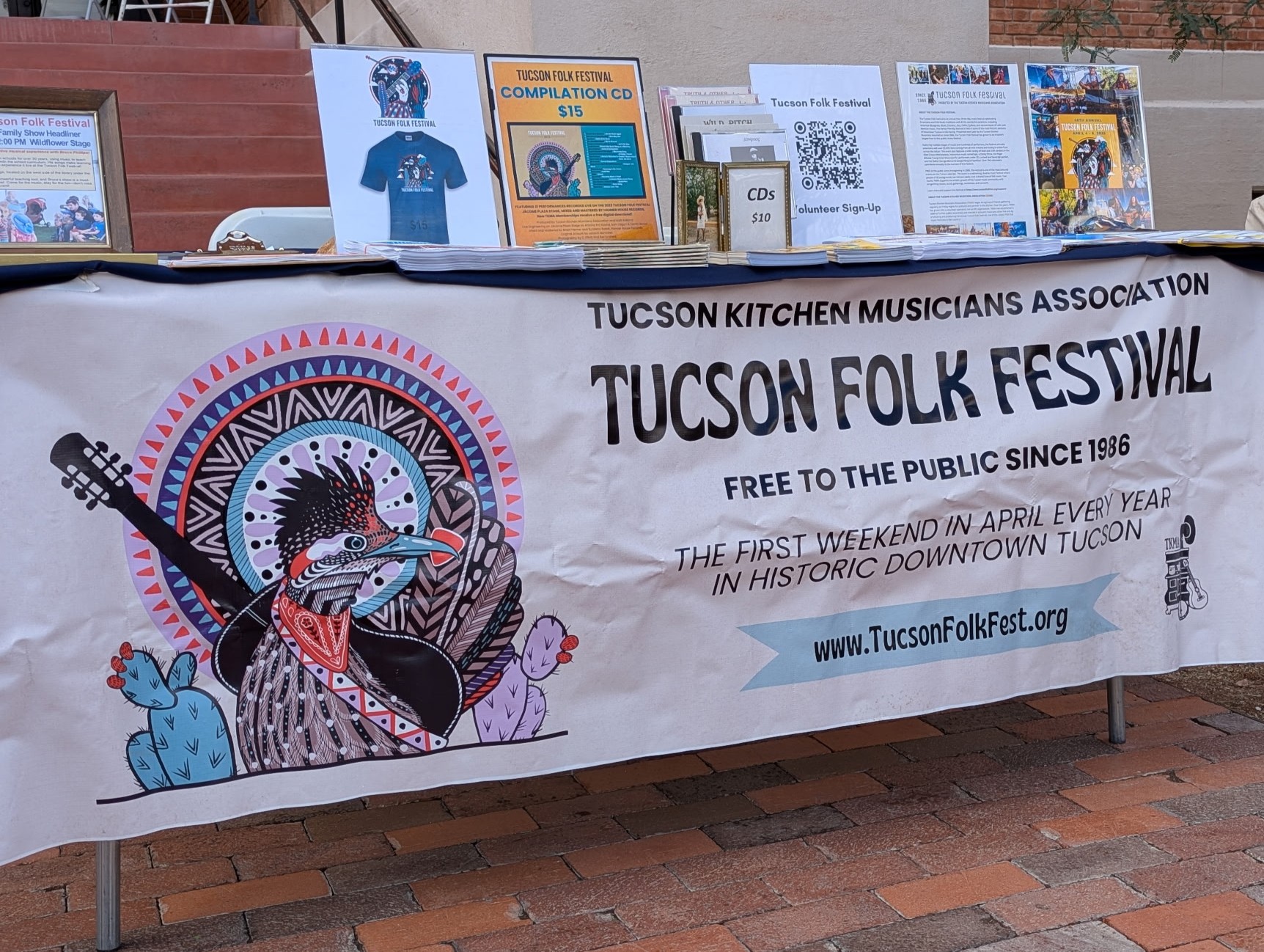 As part of our year-round community outreach, we table and connect with attendees at other local events and festivals—such as the Tucson Festival of Books, Made in Tucson Market, and more. These opportunities help us build relationships, support local culture, and share the spirit of the Tucson Folk Festival beyond our own stage.